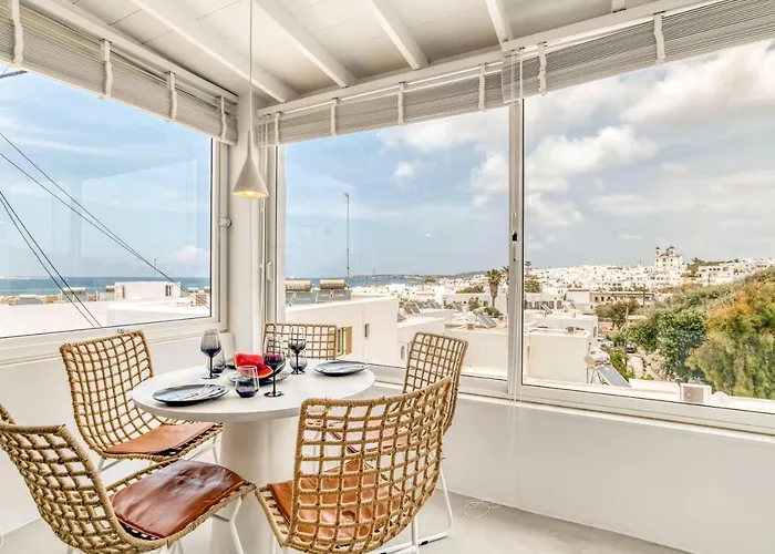 Sandy Studio With View In Naousa lägenhet erbjuder ett kök samt rum med sitthörna, teve och plattskärms-TV med satellitkanaler. Lägenheten ligger 25 km från flygplatsen Paros nationella.